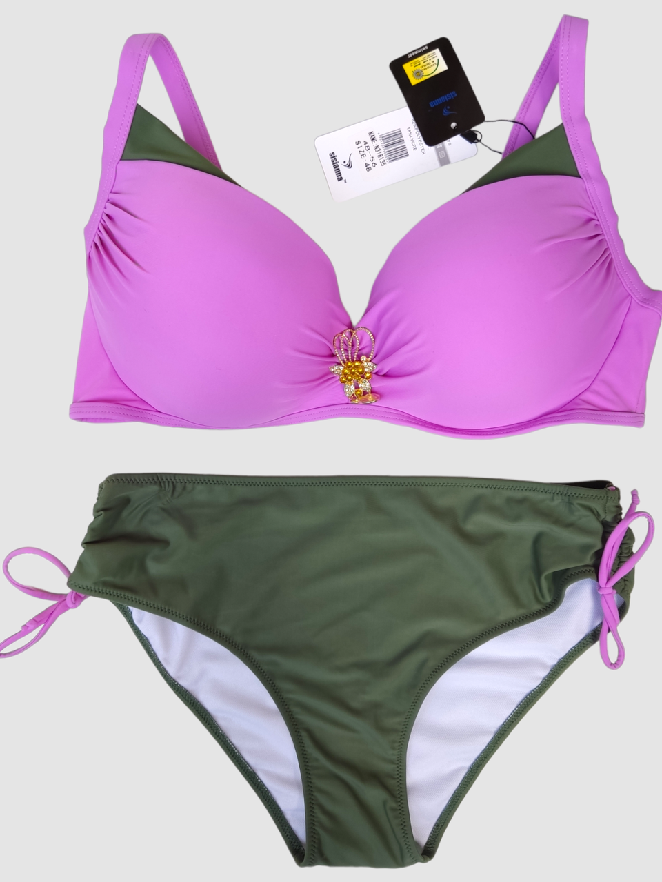 Гарний купальник із гарною посадкою, дасть змогу Вам почуватися комфортно та зручно на пляжі. Висока посадка плавок дасть змогу приховати животик, якщо це потрібно). Плавки регулюються за шириною боку.