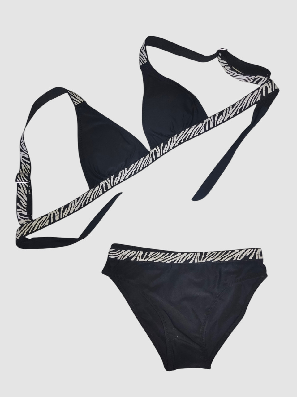 Модний купальник трикутники вставки з принтом смужки зебри на зав'язках. У топіку знімаються поролонові вкладиші. Бретели регулюються по довжині, широкі еластичні. Підкладка спереду. Зручна модель, відмінна посадка та стильний вигляд. Підійде для пляжу та басейну.