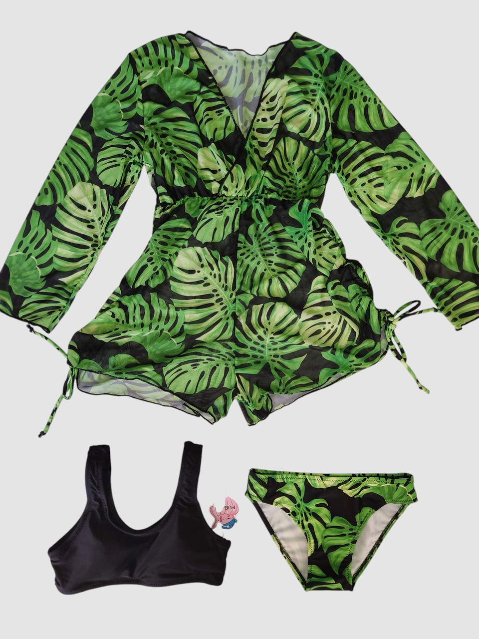 Яскравий зручний пляжний комплект плавки та топік з комбінезоном-тунікою з еластичної сіточки з довгим рукавом. Модний купальник Топ. В лифі знімаються поролонові вкладиші. Зручні трусики. Підкладка спереду. Зручна модель, відмінна посадка та стильний вигляд. Підійде для пляжу та басейну.